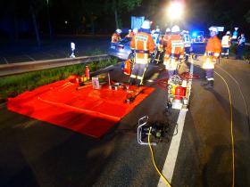 Ein Verkehrsunfall mit einer eingeklemmten Person forderte die Feuerwehr Ilvesheim in der Nacht von Freitag auf Samstag, dem 11. Juli. Ein Pkw-Fahrer war von Ladenburg kommend an der Auffahrrampe zur Ladenburger Brücke in Höhe der Chemischen Betriebe Ladenburg zuerst geradeaus gefahren und gegen einen Baum geprallt, um anschließend quer über die Straße schleudernd an der Leitplanke hängen zu bleiben. Der Aufprall war so heftig, dass der komplette Motorblock herausgerissen wurde und am Baum liegen blieb, während die Frontschürze etliche Meter entfernt auf dem Radweg zum Liegen kam. Nach Alarm um 01.03 Uhr rückte die Feuerwehr Ilvesheim mit fünf Fahrzeugen und 28 Einsatzkräften aus. In Absprache mit dem bereits anwesenden Notarzt wurde mit zwei hydraulischen Rettungssätzen zuerst auf der Fahrerseite eine große Rettungsöffnung geschaffen und anschließend das Dach abgenommen. Weitere Einsatzkräfte stellten den Brandschutz sicher, leuchteten die Einsatzstelle großräumig aus und kümmerten sich um auslaufende Betriebsstoffe. Nach Abschluss der technischen Rettung wurde der Fahrer von Feuerwehr und Rettungsdienst mit dem Spineboard achsengerecht aus dem Fahrzeug gehoben und im Rettungswagen weiterversorgt. Bis zum Eintreffen eines Abschleppwagens verblieb dann noch ein Fahrzeug zum Ausleuchten an der Einsatzstelle. Gegen halb vier konnte der Einsatz beendet werden.